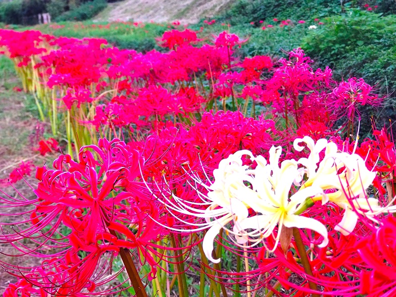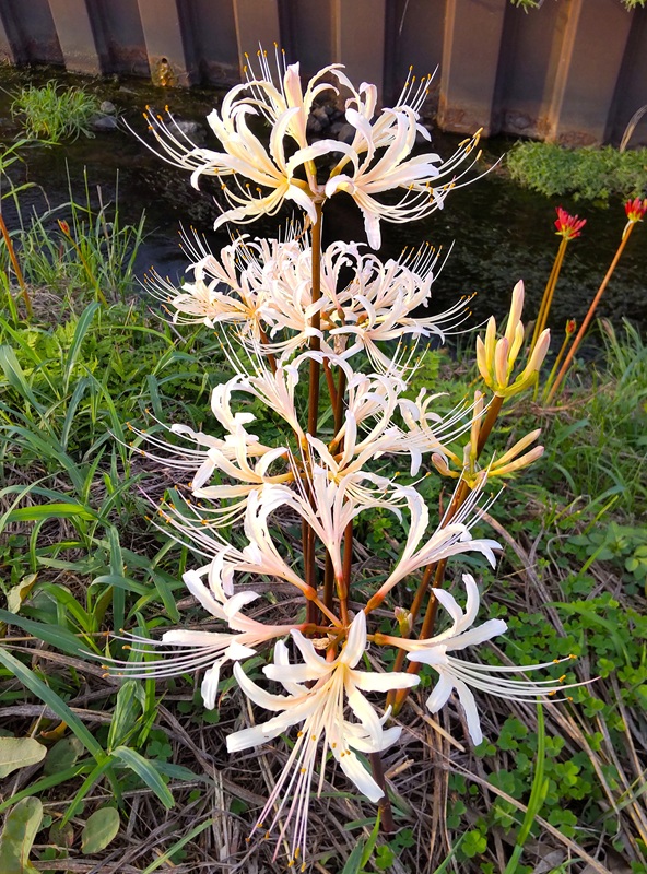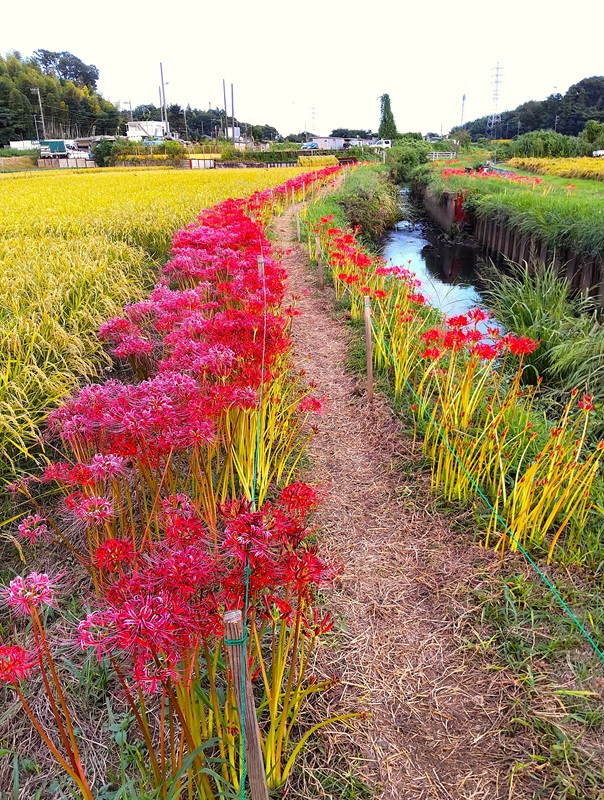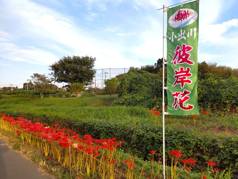 週末には彼岸花まつりが行われる小出川の彼岸花。