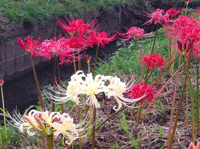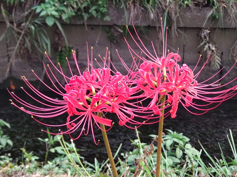 藤沢と茅ケ崎の市境の小出川の両岸の彼岸花。