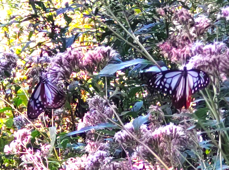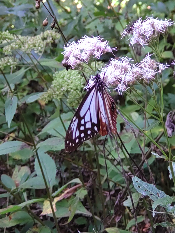 フジバカマの蜜を求めて飛来すアサギマダラ。