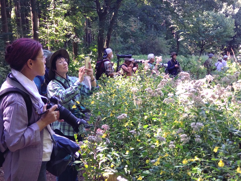 飛び交うアサギマダラを撮ろうと、多くのカメラマンが来園していた。