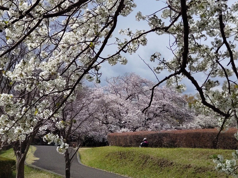 大庭城址公園の大島桜と染井吉野のコラボ。