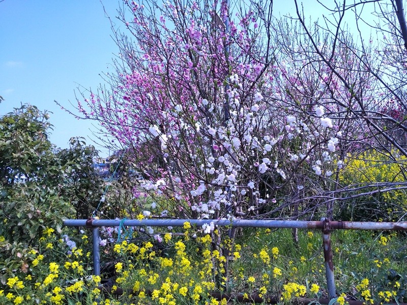 近くの花桃も見ごろ。