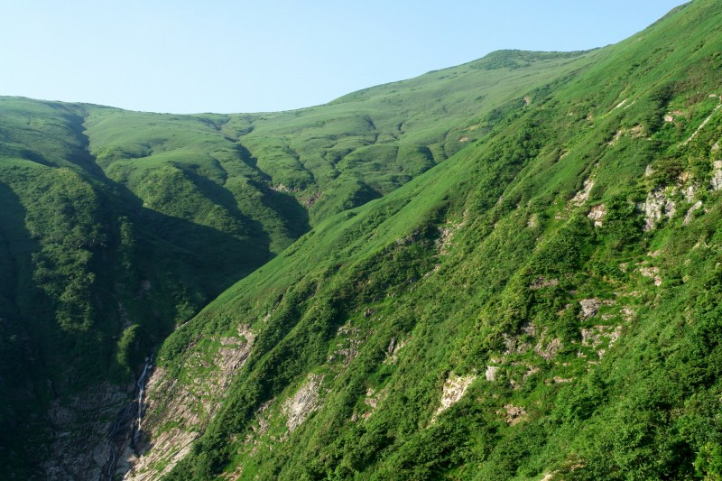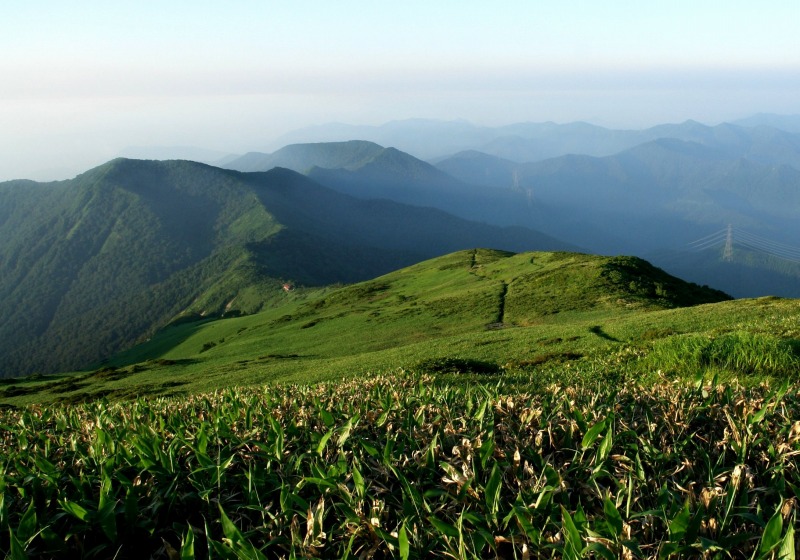 平標山の山頂に着いて今登ってきた登路を振り返ると、昨日歩いた